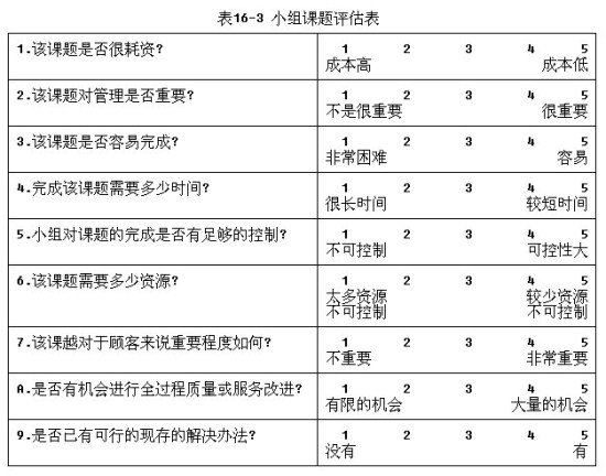 表16-3 小組課題評估表