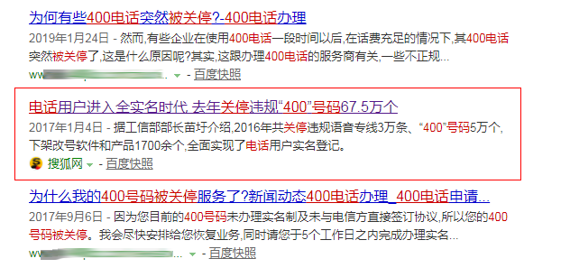 前幾年全國(guó)就對(duì)這些號(hào)碼進(jìn)行過(guò)大量的關(guān)停工作,被關(guān)停的號(hào)碼數(shù)量多達(dá)67.5萬(wàn)個(gè),而這么多的號(hào)碼都是企業(yè)對(duì)外宣傳推廣過(guò)的,給這些企業(yè)造成的損失可想而知!