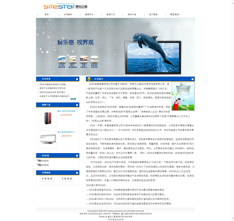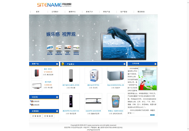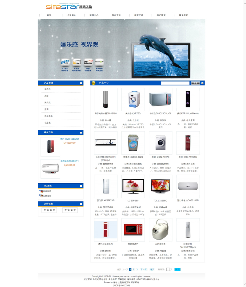 模板編號:     S1418 家電常用設備家用電器影像系統(tǒng)建站模板