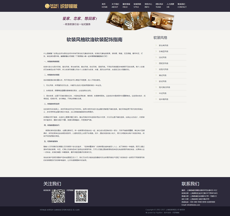 模板編號:     B1865 織夢HTML5紫色響應式軟裝裝修類企業(yè)模板