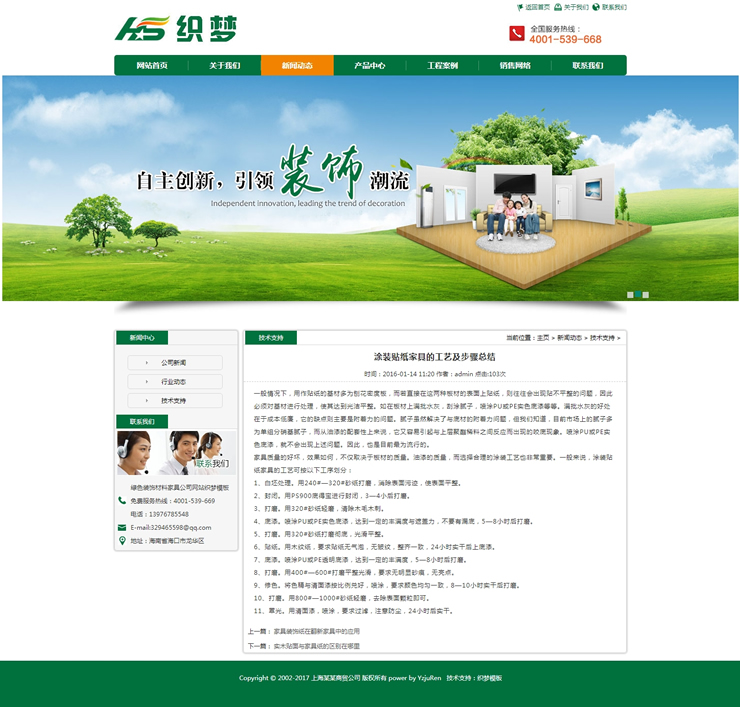 綠色裝飾材料家具公司網(wǎng)站織夢模板