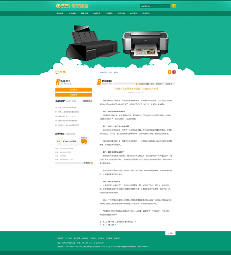 模板編號:     B1913 綠色小清新印刷印業(yè)網(wǎng)站源碼織夢通用企業(yè)類網(wǎng)