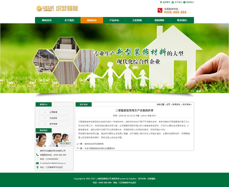 主頁(yè) > 網(wǎng)站建設(shè) > 網(wǎng)站模板 > 建筑、裝修、電器、家居 > 綠色裝飾材料家具公司網(wǎng)站織夢(mèng)模板(修正版)