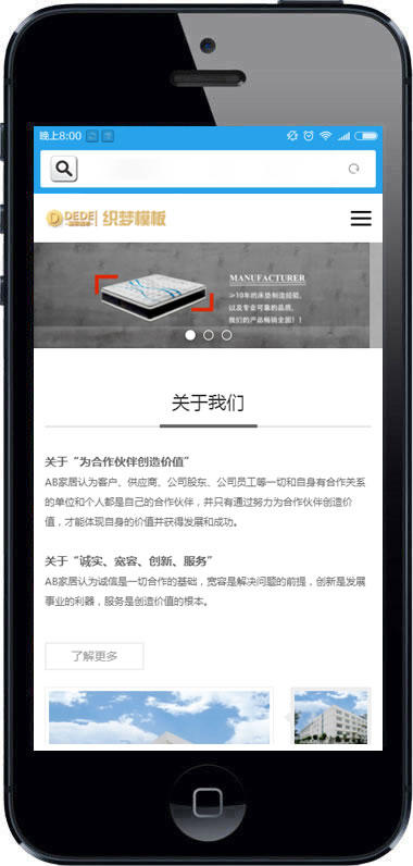 模板編號:     B2024 HTML5響應(yīng)式家居床墊類網(wǎng)站源碼 H5家具定制類網(wǎng)站