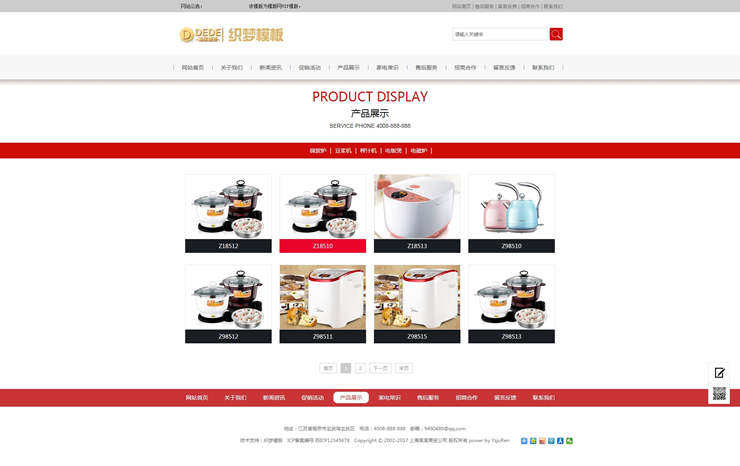 模板編號:     B2074 家用電器網(wǎng)站源碼 智能小家電電器類網(wǎng)站織夢模