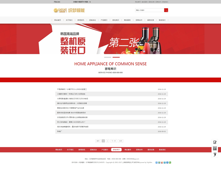 家用電器網(wǎng)站源碼 智能小家電電器類網(wǎng)站織夢模