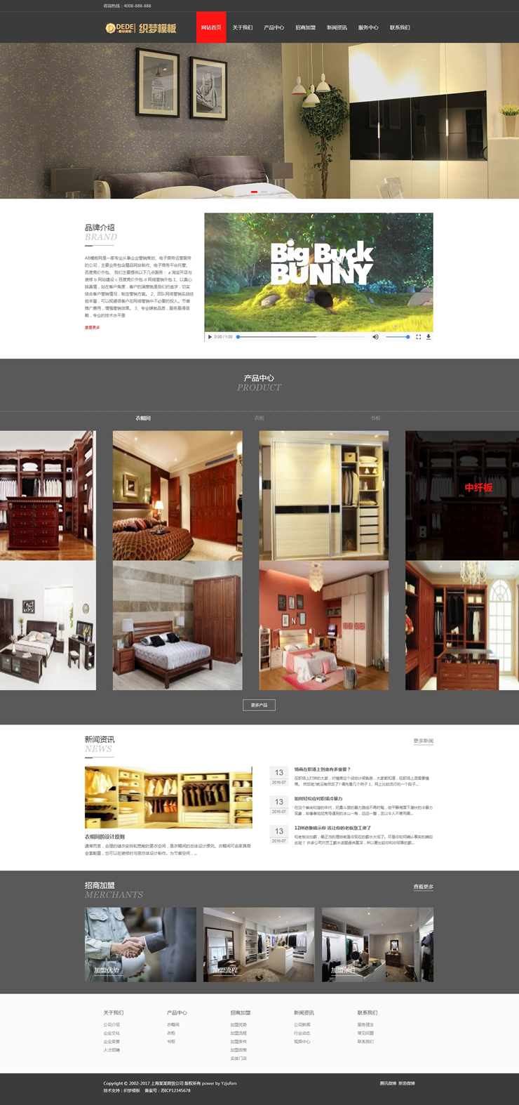 模板編號:     B2079 自適應家居衣柜展示類通用網站織夢模板
