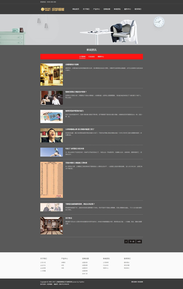 自適應家居衣柜展示類通用網站織夢模板