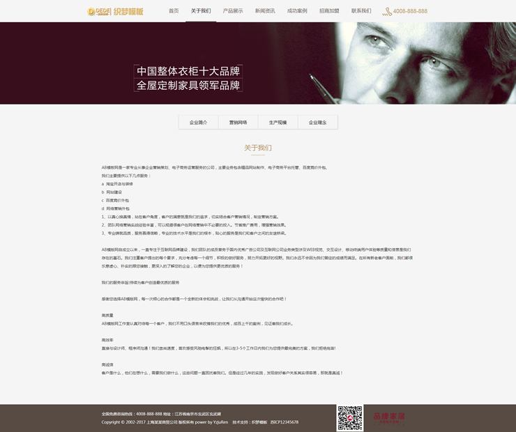 模板編號(hào):     B2354 響應(yīng)式品牌衣柜家居類織夢(mèng)模板HTML5高端大氣的家