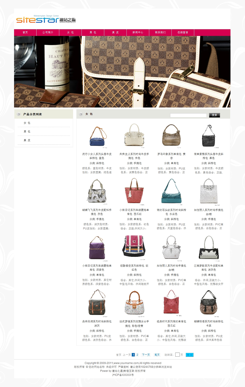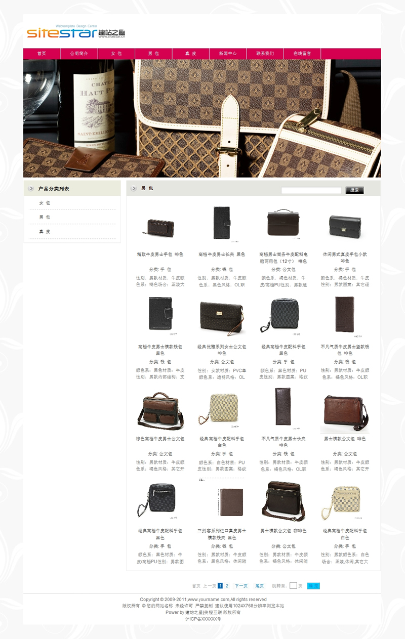 模板編號:     S1038 皮具用品常用網(wǎng)站建站模板