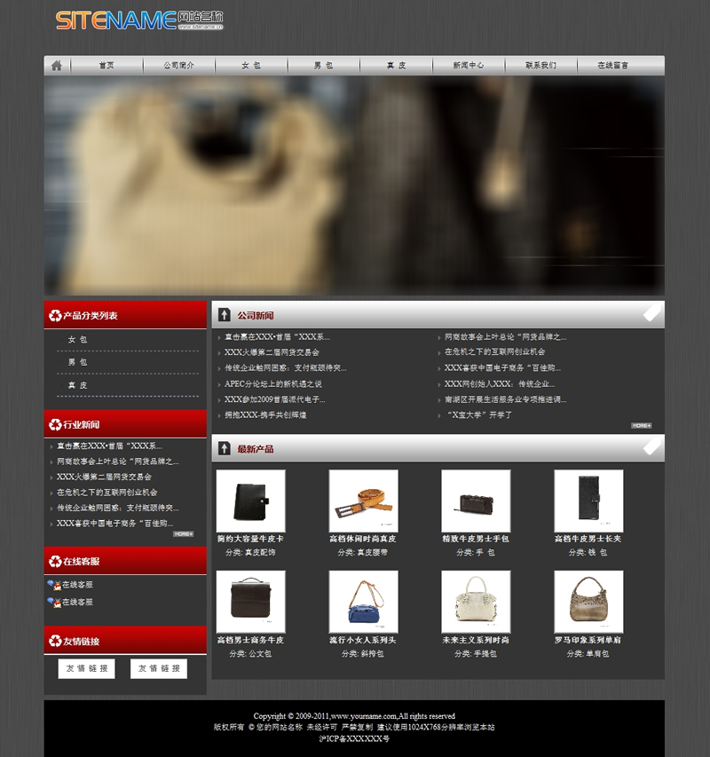 模板編號(hào):     S1040 精品皮具用品各種小商品建站模板