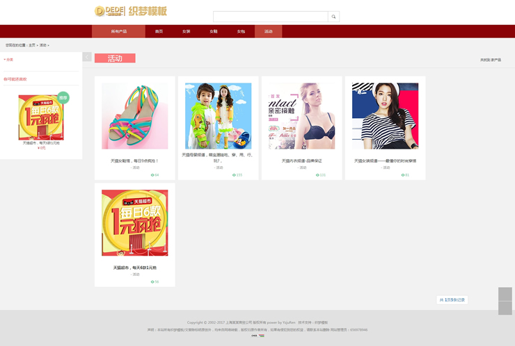 主頁(yè) > 網(wǎng)站建設(shè) > 網(wǎng)站模板 > 酒類(lèi)、食品、服飾、服務(wù) > 織夢(mèng)簡(jiǎn)潔大方大氣淘寶客購(gòu)物網(wǎng)站模板