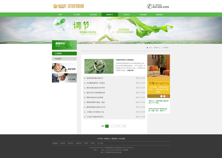 室內(nèi)空氣質(zhì)量檢測網(wǎng)站源碼 環(huán)保型企業(yè)織夢模板