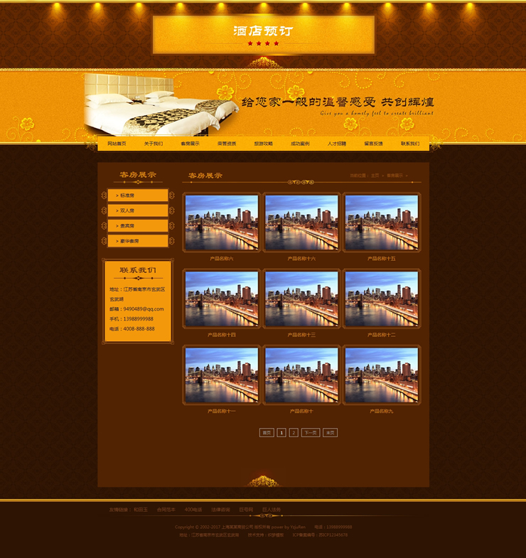 模板編號:     B2456 酒店旅館旅租客房類網(wǎng)站織夢模板金色酒店客房