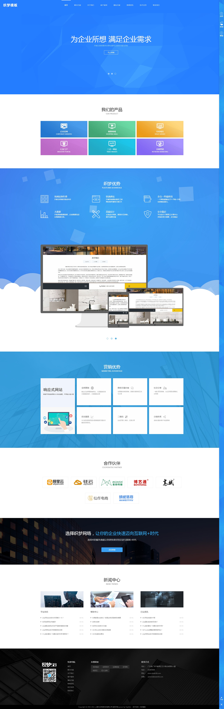 模板編號:     B1614 響應式網絡建設設計公司網站織夢模板(自適應移