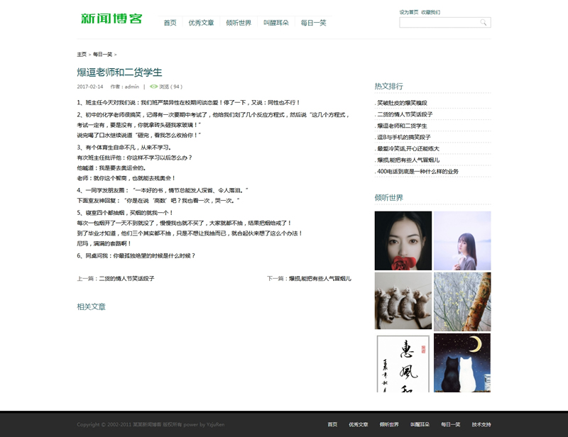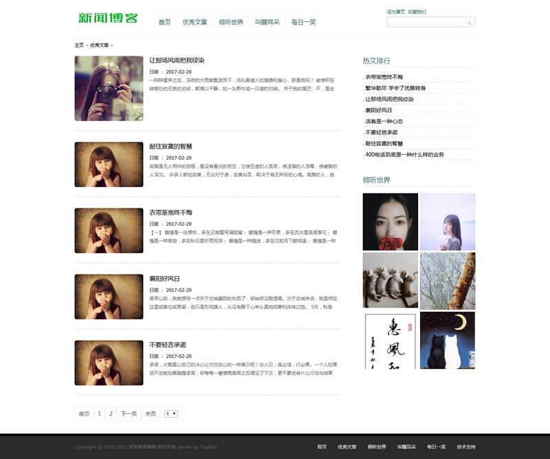 主頁 > 網(wǎng)站建設(shè) > 網(wǎng)站模板 > 資訊、博客、展銷、其它 > 小清新優(yōu)秀文章新聞博客類織夢模板(帶手機(jī)端