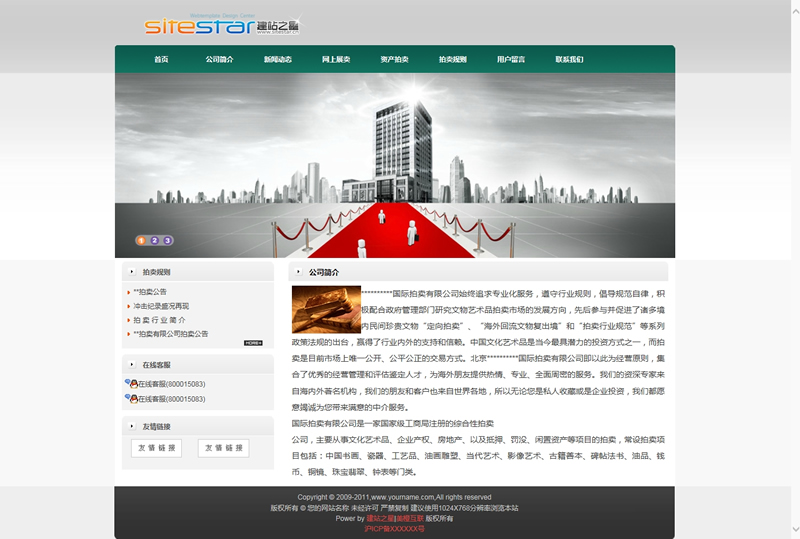 模板編號(hào):     S1519 公司拍賣行黃金典當(dāng)行會(huì)展企業(yè)建站系統(tǒng)