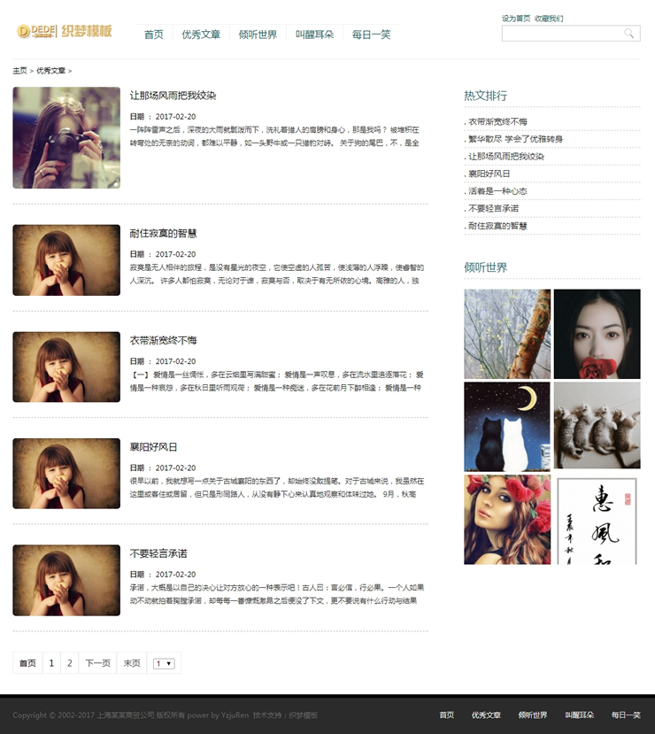 小清新優(yōu)秀文章新聞織夢博客類網(wǎng)站源碼個人博