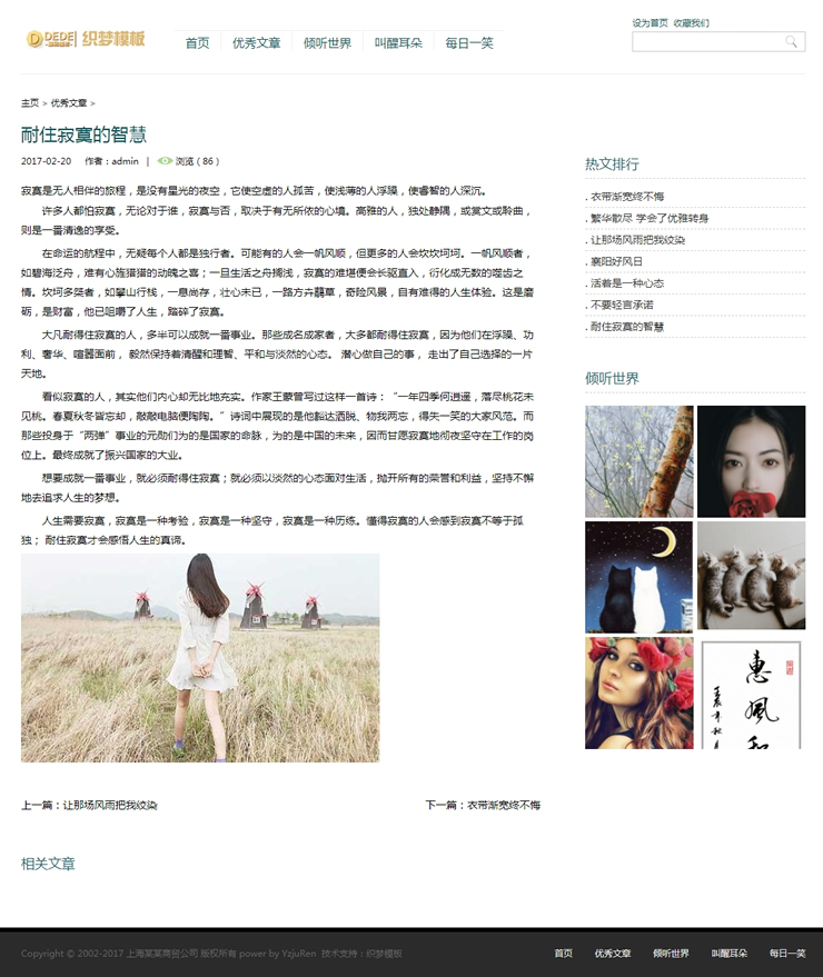 模板編號:     B2278 小清新優(yōu)秀文章新聞織夢博客類網(wǎng)站源碼個人博