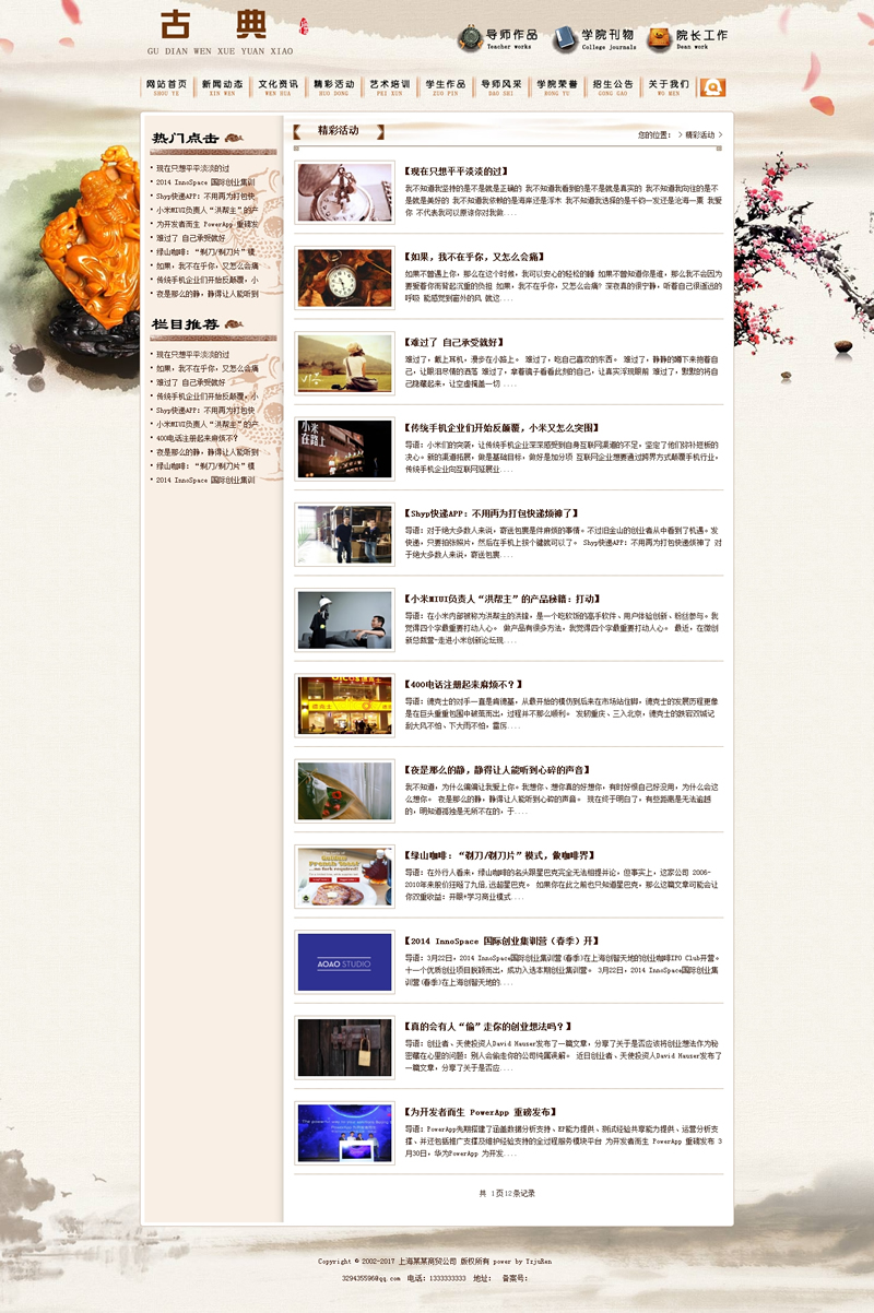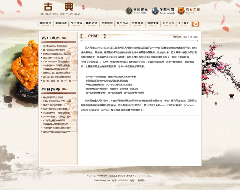 古典古玩文學院校類網站織夢模板