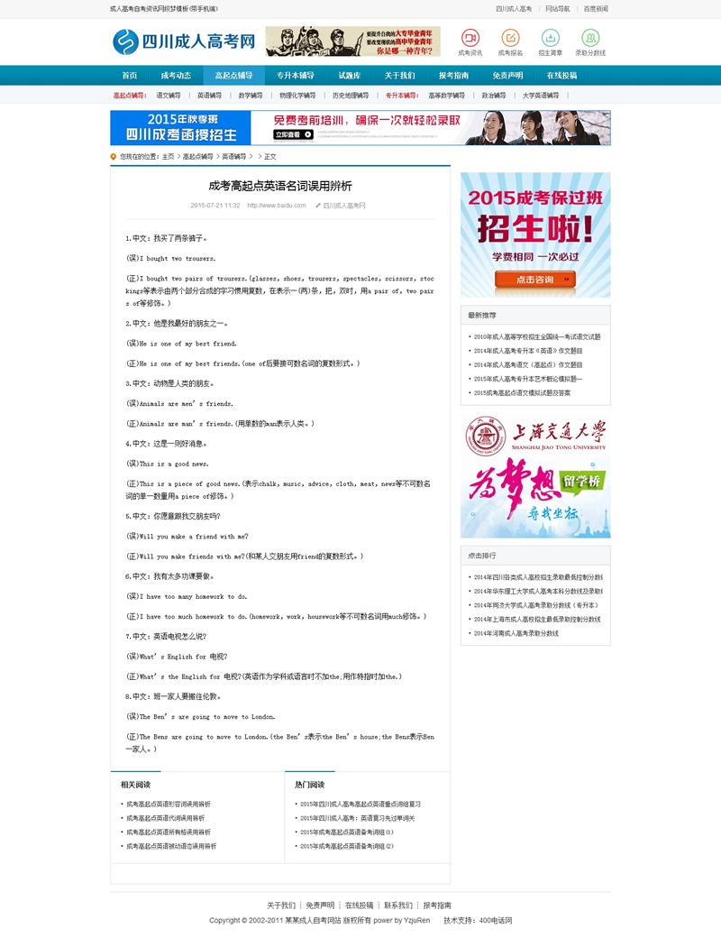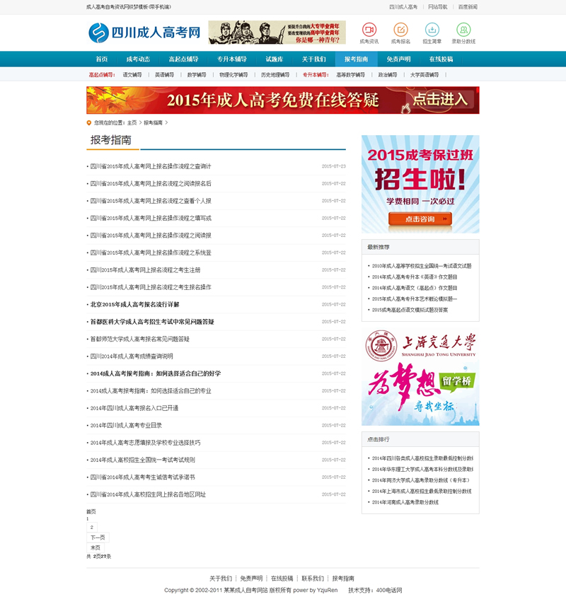 主頁(yè) > 網(wǎng)站建設(shè) > 網(wǎng)站模板 > 學(xué)校、培訓(xùn)、古典、政法 > 成人高考自考資訊網(wǎng)織夢(mèng)模板(帶手機(jī)端)