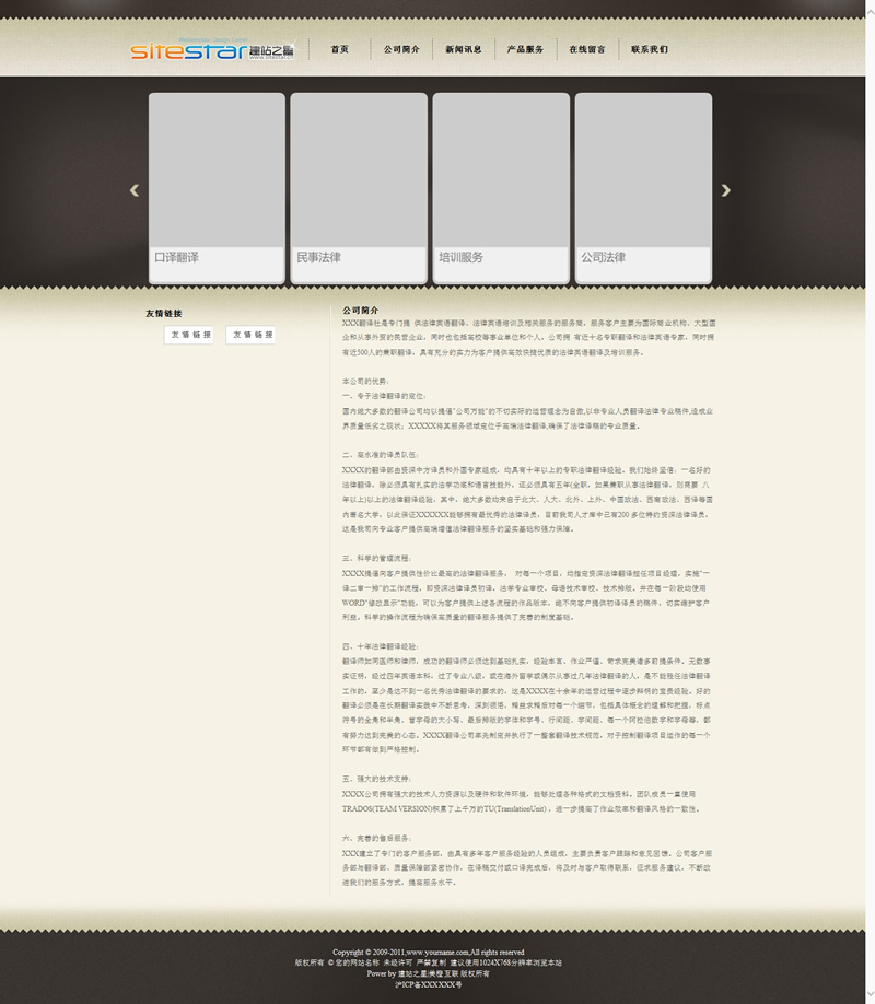 二、本模板可免費(fèi)提供給廣大建站愛好者學(xué)習(xí)使用,但不提供任何形式的咨詢解答服務(wù)。為了尊重本公司的設(shè)計(jì)成果,請(qǐng)使用模板時(shí)添加本站網(wǎng)址為友情鏈接,否則本站將追究其版權(quán)使用的權(quán)限。