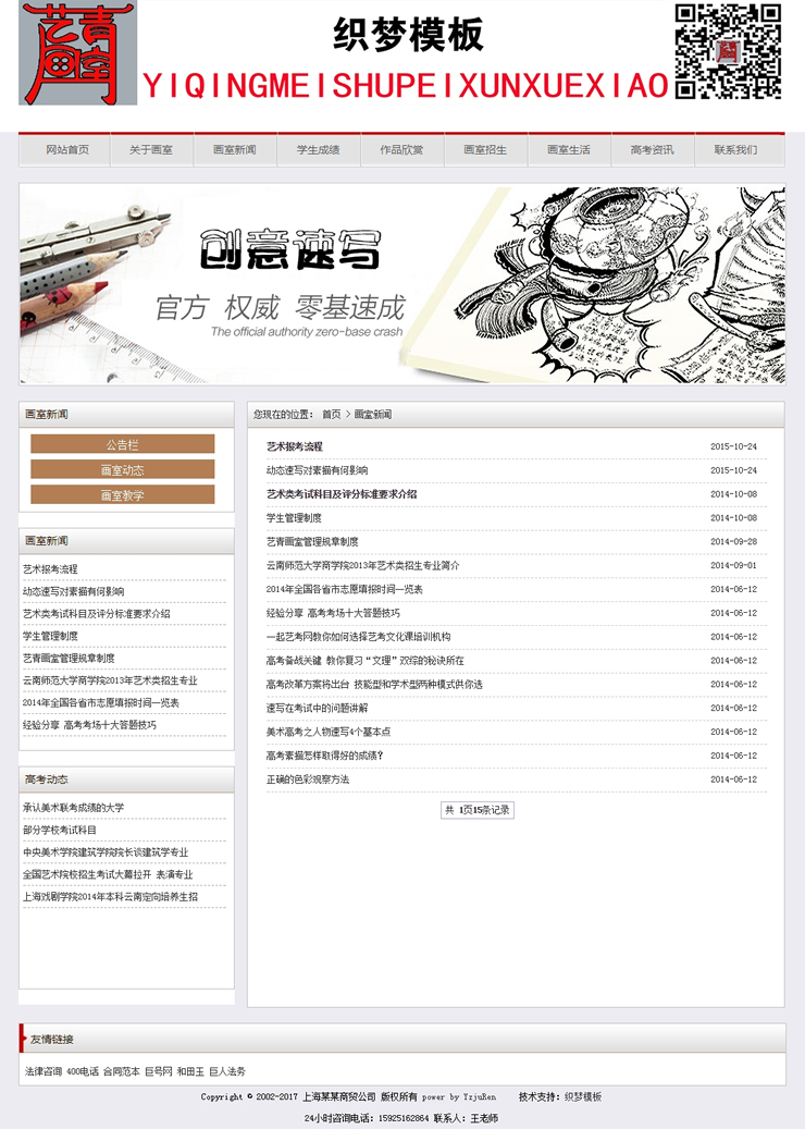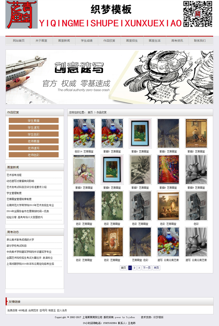 主頁 > 網(wǎng)站建設(shè) > 網(wǎng)站模板 > 學(xué)校、培訓(xùn)、古典、政法 > 美術(shù)藝術(shù)培訓(xùn)教育類企業(yè)織夢模板