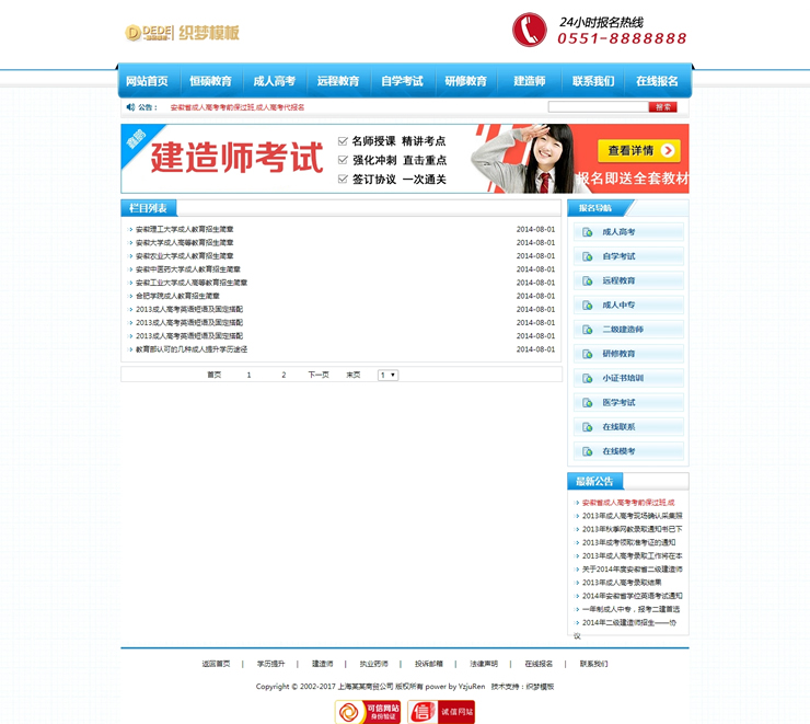 主頁(yè) > 網(wǎng)站建設(shè) > 網(wǎng)站模板 > 學(xué)校、培訓(xùn)、古典、政法 > 藍(lán)色成人培訓(xùn)遠(yuǎn)程教育類企業(yè)織夢(mèng)模板