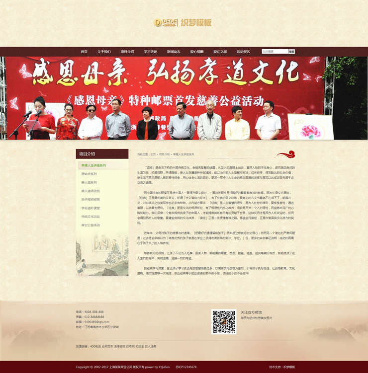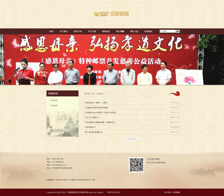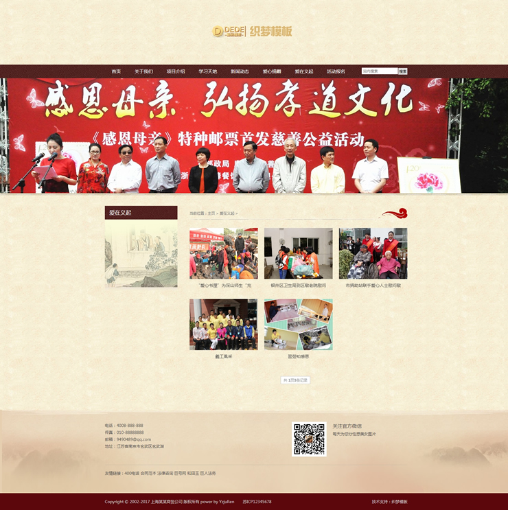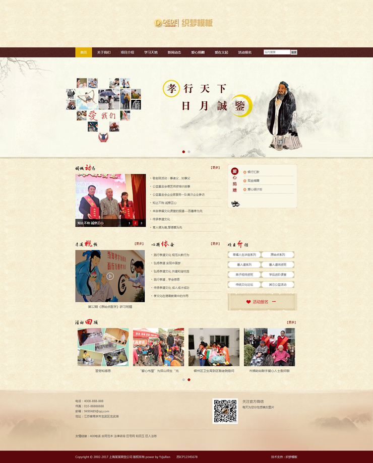 慈善公益網(wǎng)站源碼公益基金文化孝道織夢(mèng)模板