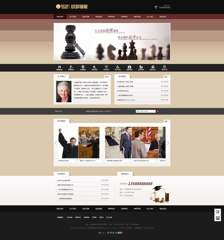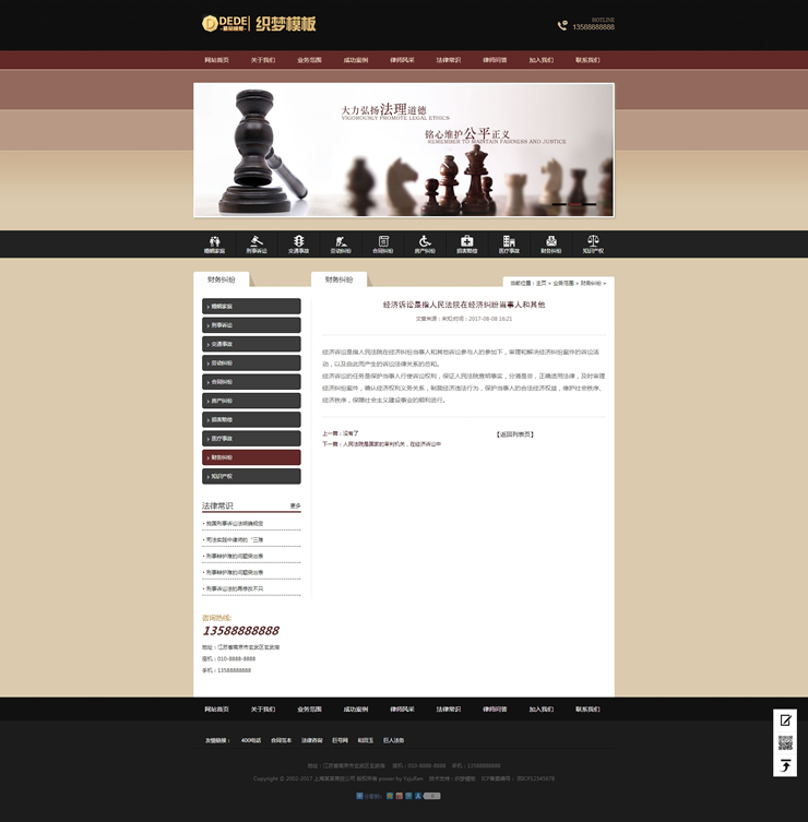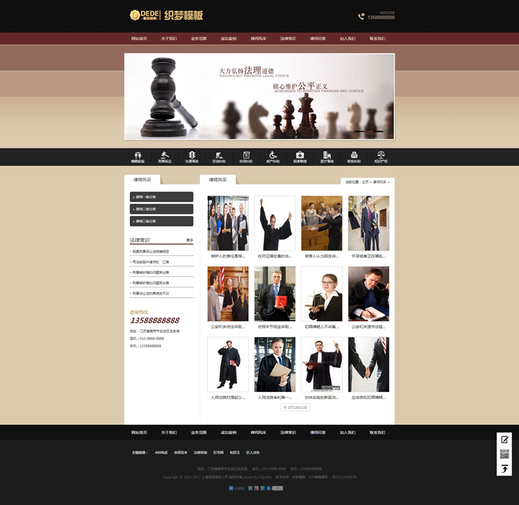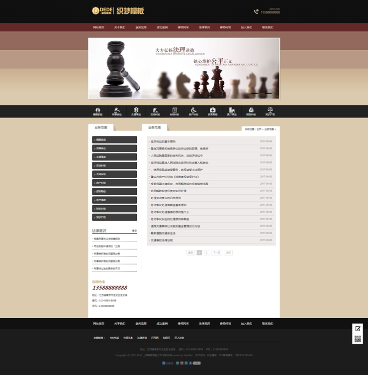 模板編號:     B2129 律師事務所資訊類網(wǎng)站織夢模板法律援助知識個