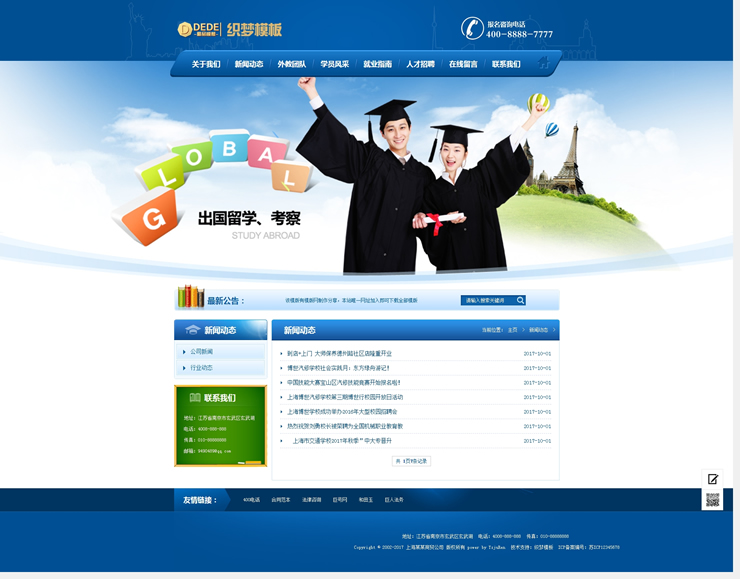 主頁 > 網(wǎng)站建設(shè) > 網(wǎng)站模板 > 學(xué)校、培訓(xùn)、古典、政法 > 出國留學(xué)簽證類網(wǎng)站織夢模板出國留學(xué)簽證服務(wù)
