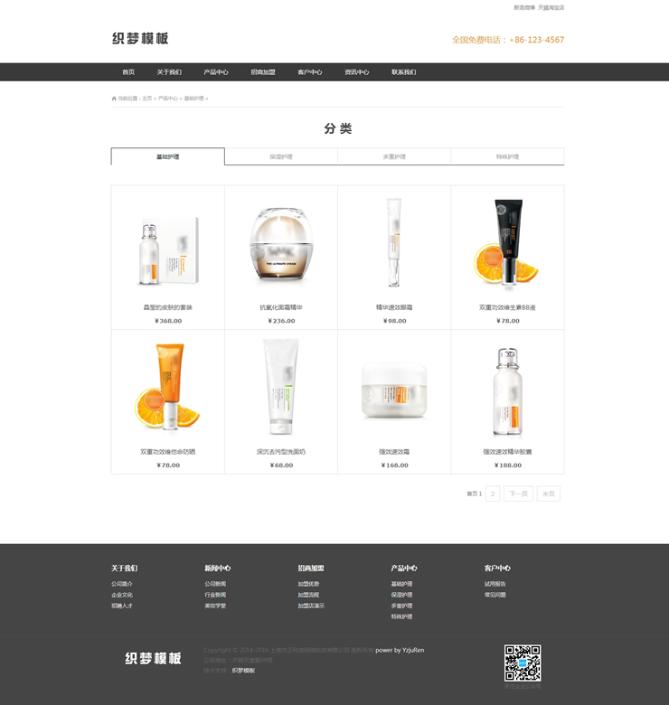 模板編號(hào):     B1600 響應(yīng)式化妝品防嗮霜商城織夢dedecms模板(自適應(yīng)