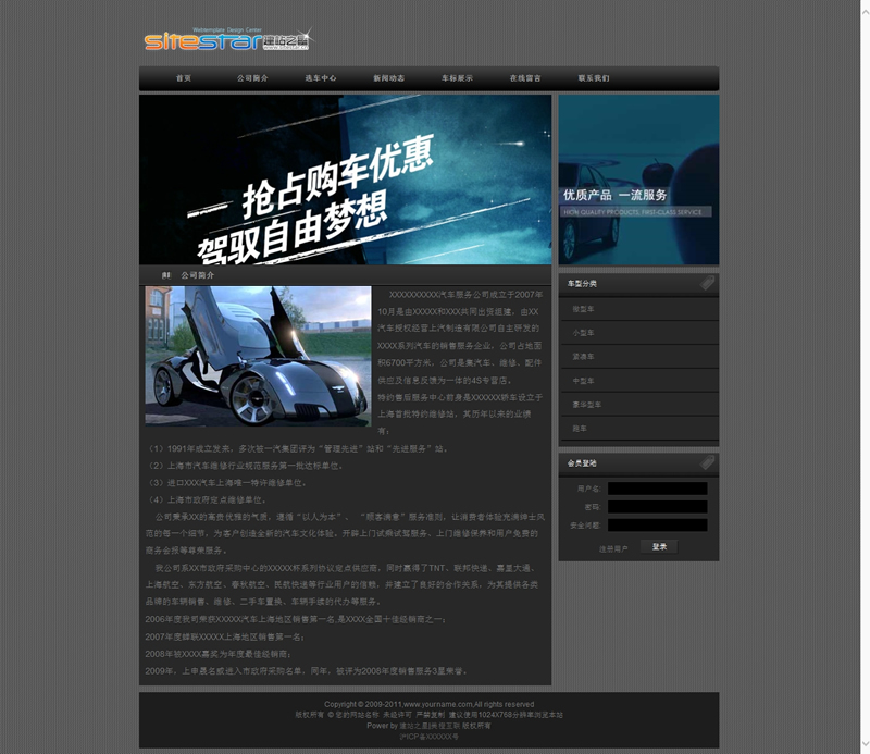 模板編號:     S1295 黑色汽車銷售公司專業(yè)汽車售賣企業(yè)建站模板