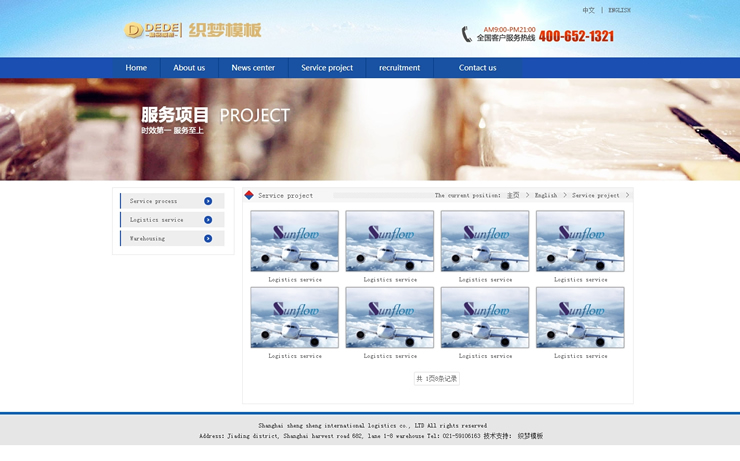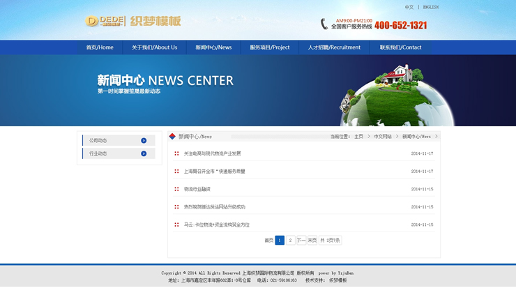 中英版藍(lán)色大氣物流公司企業(yè)網(wǎng)站整站織夢(mèng)模板
