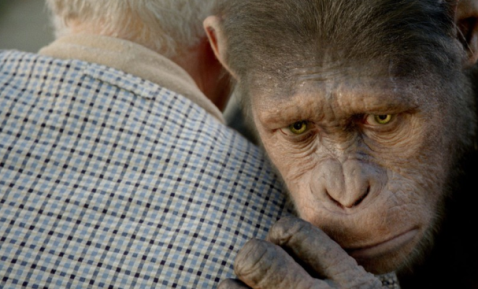 (配圖:《猩球崛起1》凱撒與人類(lèi)相處的畫(huà)面)