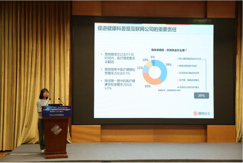?。▓D:搜狗搜索高級總監(jiān)、搜狗明醫(yī)總經(jīng)理韓異凡在會上演講)