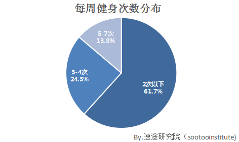 雖然比來幾年人們參加體育熬煉的意識增強(qiáng),熬煉的人數(shù)比例大幅上升,但是調(diào)查數(shù)據(jù)顯示,人們平均每周的健身次數(shù)仍然處在較低的水平,還未養(yǎng)成高頻次健身的習(xí)慣。61.7%的用戶每周熬煉2次以下,24.5%的用戶每周熬煉3-4次,僅有13.8%的用戶每周熬煉5-7次。在生活節(jié)奏不停加快的配景之下,沒有足夠的時(shí)間是人們不健身的主要因素之一,健身APP在不停豐富其產(chǎn)品功能之后,探索如何能利用人們?nèi)粘9ぷ?、學(xué)習(xí)、生活中的碎片化時(shí)間,提高用戶健身欲望和健身次數(shù)顯得尤為重要。
