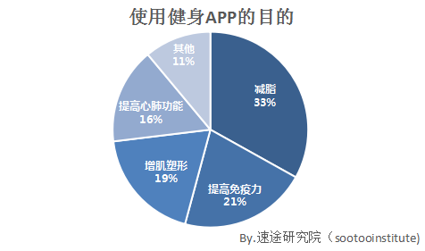 如今,人們對于健身的追求愈發(fā)強(qiáng)烈,以往健身的目的大多為減肥,隨著人們對生活品質(zhì)要求的提升,期望通過健身提高免疫力、增肌塑形、提高心肺功能的用戶數(shù)量增加,占比超過半成,不過目的在于減脂的用戶仍占絕大部分,占比為33%。