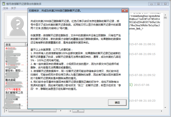 6,在電腦上查看手機(jī)上的微信聊天記錄的功能就實(shí)現(xiàn)了,但如果你認(rèn)為他只可以查看未刪除的微信聊天內(nèi)容的話那就大錯(cuò)特錯(cuò)了,,該軟件還可以實(shí)現(xiàn)微信聊天記錄刪除了怎么恢復(fù)的功能,方法也很簡單,我們只需點(diǎn)擊下圖箭頭所指的恢復(fù)菜單即可。