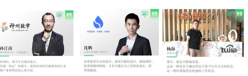 自客節(jié)上,作為合作企業(yè),這些互聯(lián)網(wǎng)企業(yè)創(chuàng)始人與自客共同探討了在個(gè)體崛起的共享時(shí)代,個(gè)人成長(zhǎng)與創(chuàng)新力發(fā)揮的話題。神州數(shù)字CEO、天使投資人孫江濤認(rèn)為有夢(mèng)想的個(gè)體容易吸引他:“他們往往是ALL IN的狀態(tài),在他們身上擁有那種'一萬(wàn)年太久只爭(zhēng)朝夕'的特質(zhì)。”前美團(tuán)外賣業(yè)務(wù)負(fù)責(zé)人、水滴互助創(chuàng)始人沈鵬認(rèn)為個(gè)體崛起的時(shí)代,如果想要長(zhǎng)足的進(jìn)步,需要“打破舒適區(qū),挑戰(zhàn)現(xiàn)狀。把事情做到極致!”