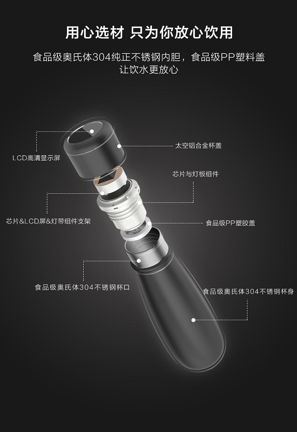 智能水杯,就要給你定制私人的設(shè)計(jì)最佳的健康方案。所以你會發(fā)現(xiàn)這樣的情形,在材質(zhì)的選擇的情況下,由于具有更好的保溫保冷、續(xù)航能力,智能保溫杯在未來會更受歡迎,價(jià)格也會成倍上漲。