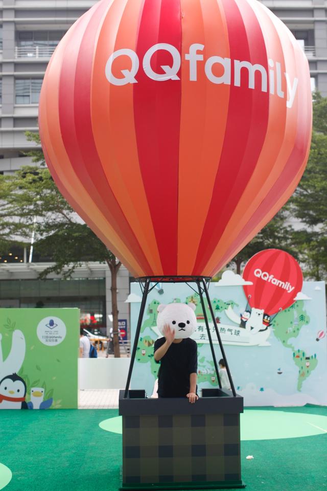 活動當天,遠遠就看到騰訊大廈北廣場上從天而降的QQfamily熱氣球。說走就走已經(jīng)過時了,說飛就飛才是最in的操作。于是一波鵝廠妹子小哥涌向熱氣球,帶上QQfamily道具頭套賣起了萌,放飛的表情美滋滋~