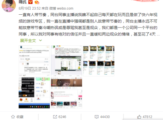 本以為事情到此結束,楚河以前輩身份喊話嗨氏需要時間成長,此舉引發(fā)了兩位大主播的二度撕逼,最終粉絲之間的互黑徹底激怒了楚河,并喊話黑粉多說沒用直播對峙。最終在直播中解釋了此次的誤會,怒懟了一波水軍,大談網(wǎng)絡暴力!