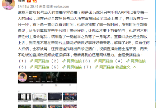 事件起因是由于在比來的虎牙的人氣沖榜活動中,原本不打算參加活動的楚河被嗨氏粉絲激怒,雙方粉絲護主心切,互相對罵最終節(jié)奏被帶的飛起。后來,嗨氏和楚河都在各自的微博上頒發(fā)長文回應表達各自態(tài)度,嗨氏上傳回放視頻拒絕莫須有的罵名,楚河則通過自身的辛酸直播歷程,體現(xiàn)希望噴子滾開凈化直播間。