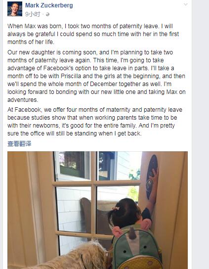 2015 年,扎克伯格的第一個女兒Max誕生時,他也是休了兩個月的陪產(chǎn)假。
