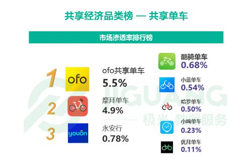 自共享單車(chē)嶄露頭角,摩拜、ofo發(fā)展勢(shì)如燎原,奠定共享單車(chē)行業(yè)第一梯隊(duì)的格局。永安行緊隨其后,位列共享單車(chē)第二梯隊(duì)“頭牌”。據(jù)極光大數(shù)據(jù)在 6 月對(duì)共享單車(chē)市場(chǎng)滲透率的排名,永安行以0.78%的市場(chǎng)滲透率僅次于ofo5.5%、摩拜4.9%位居行業(yè)第三名。