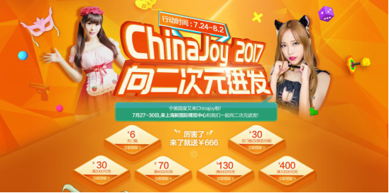 在Chinajoy的期間,寧美國度官方商城為助力CJ,推出了一系列的活動,優(yōu)惠促銷力度也是非常大的,還有很多優(yōu)惠劵和大禮送出,,活動包孕“來了就送¥666”、“ChinaJoy面基禮”、“基友有‘機’福”、“送LED風(fēng)扇”、“贈鼠鍵套裝”等。