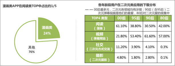 360 手機(jī)助手的陳訴顯示,漫畫成為年輕人的剛需,在閱讀類應(yīng)用搜索下載量TOP50 中,漫畫類占24%。TOP20 中,漫畫類應(yīng)用整體搜索下載量遠(yuǎn)高于新聞資訊類應(yīng)用整體。