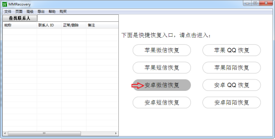 本文所使用的微信恢復(fù)工具是 MMRecovery。該工具是一個(gè)全面的手機(jī)通訊消息的恢復(fù)軟件,可以實(shí)現(xiàn)對(duì)安卓和蘋(píng)果手機(jī)微信、QQ、短信以及陌陌等刪除聊天記錄的快速恢復(fù)。