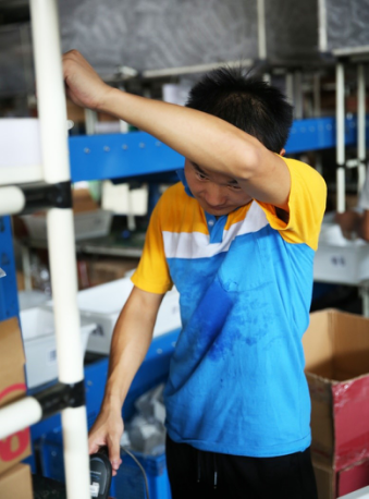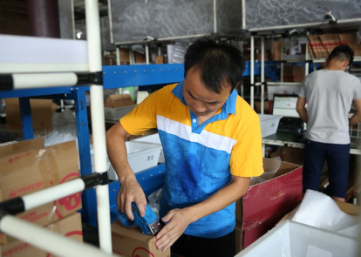 裝箱、封膠帶、掃描、貼單、稱重,這幾個動作他每天都要重復(fù)幾千次